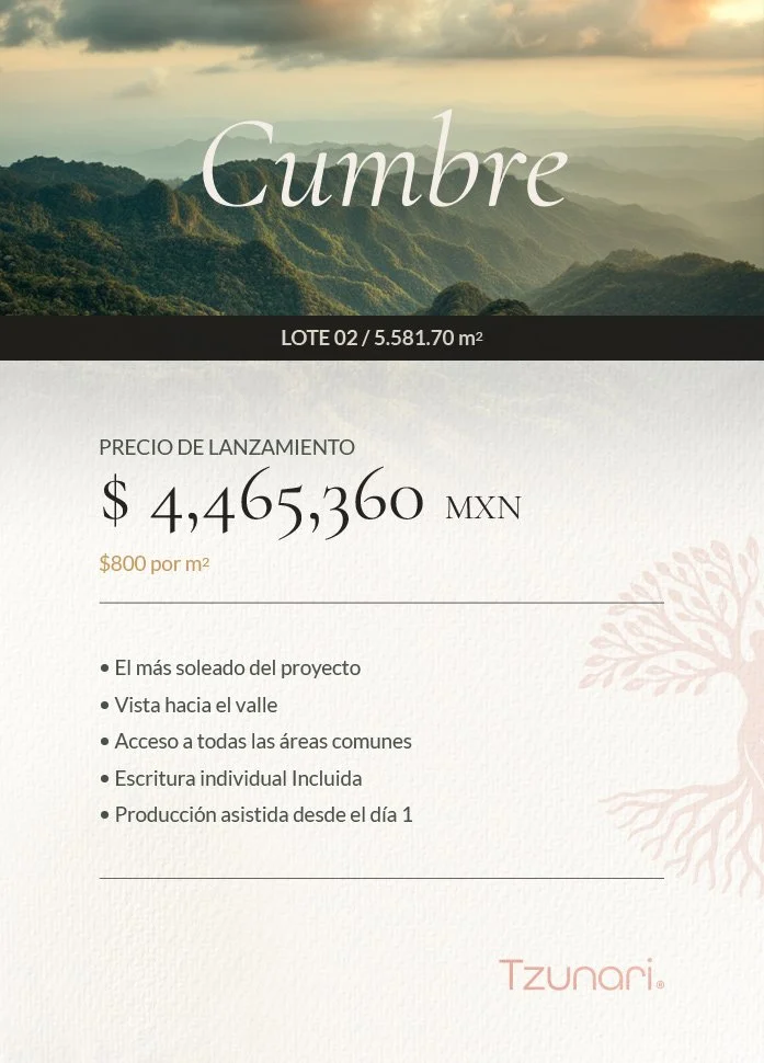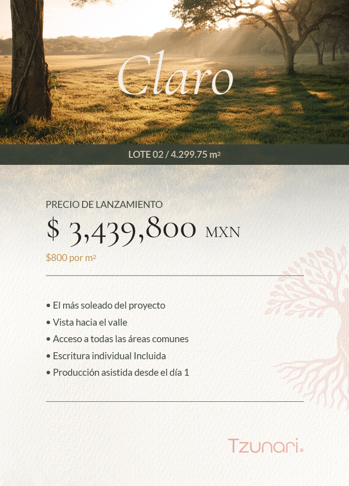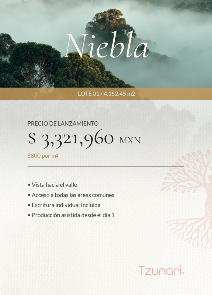Tzunari® es un proyecto pequeño por diseño. Solo 3 lotes residenciales en 3.8 hectáreas. Cuando se agoten, se agota la oportunidad de ser Lote Fundador.