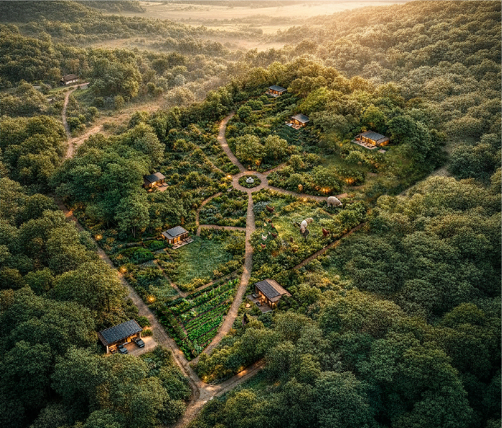 Vivienda, producción, conservación y operación diseñados como un solo sistema vivo.